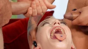 TransAngels: Blond haired Pierce Paris & Izzy Wilde blowjob